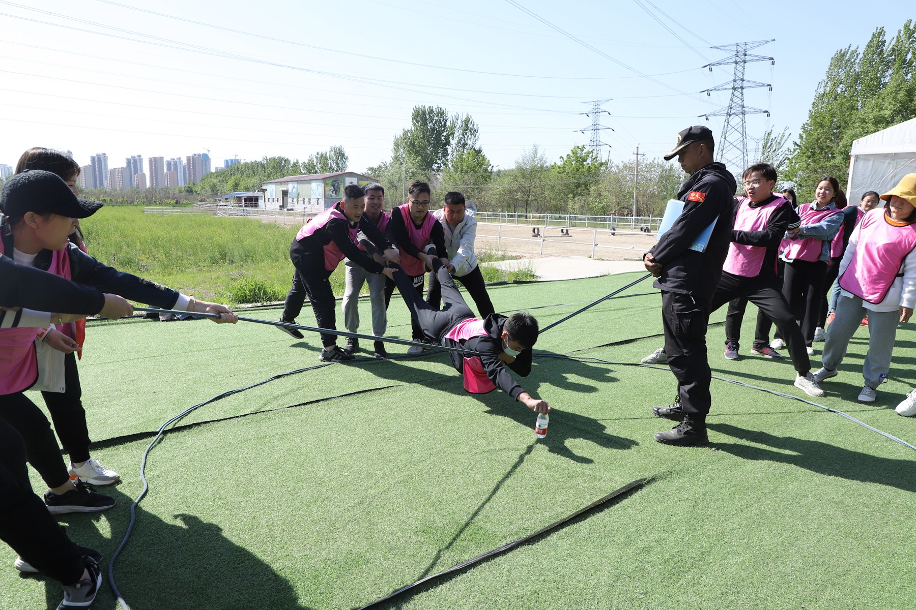 生死电网项目要求小队内每一个成员通过狭窄的逃生口成功脱险,各队成员抛掉疏离走向信任,分工协调、精细操作、迎难而上,化不可能为可行,助力队友成功‘逃生’,磨炼了战胜困难的毅力,提振了自信心。